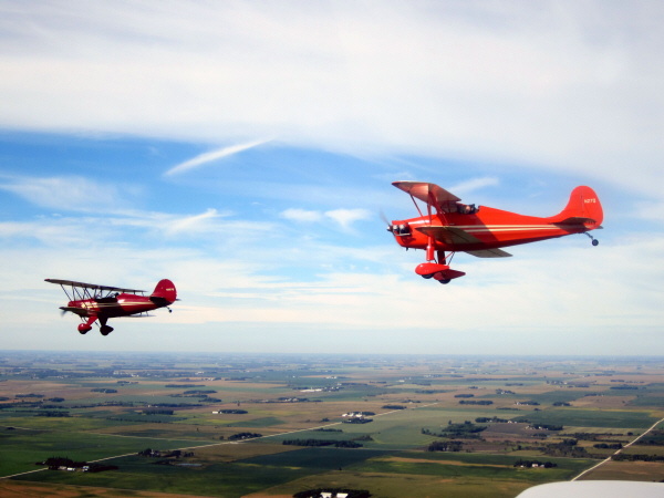 Jeff in the lead flying the Hatz, John in the Parakeet and young John